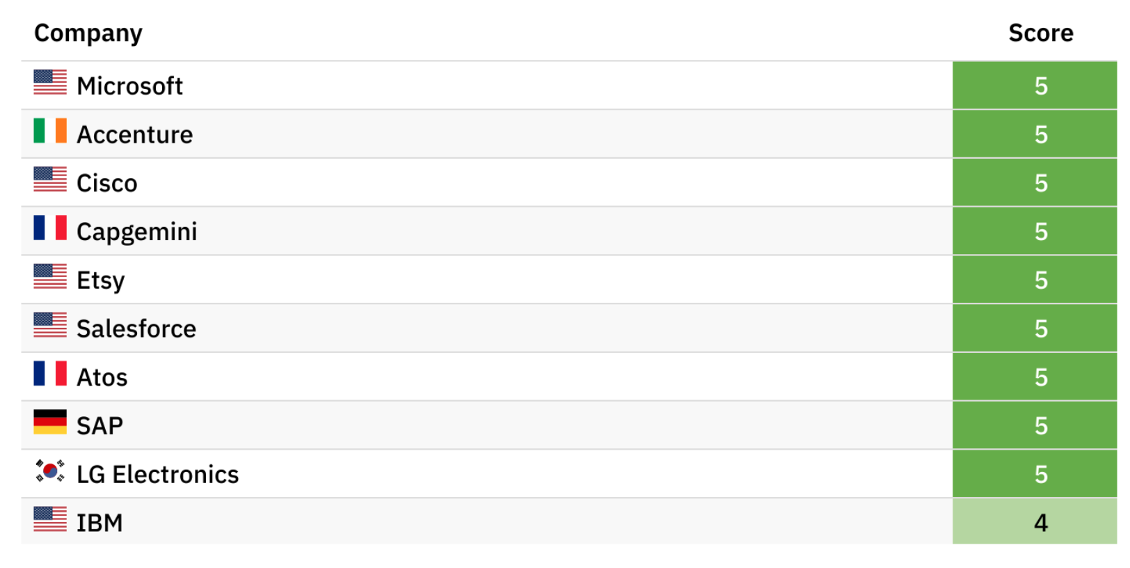 The assessment comes from GlobalData’s Thematic Research ecosystem, which ranks companies on a scale of one to five based on their likelihood to tackle challenges like ESG and emerge as long-term winners of the technology sector.
