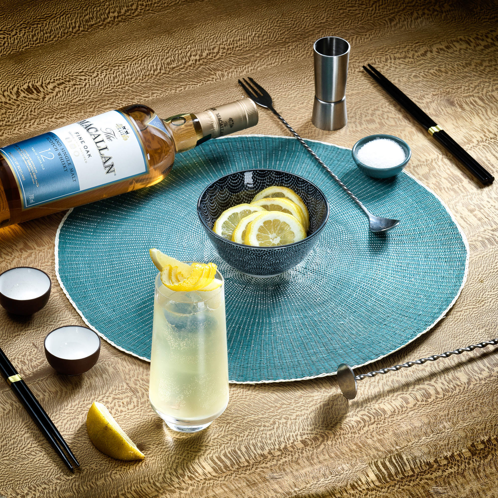 Method: Fill the glass with ice. Pour in Macallan 12yo Fine Oak, Manzanilla sherry and lemon juice. Stir then add tonic to the top.