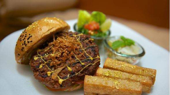 Price: 120 AED for burger and chick peas fritters (approximately $33)
