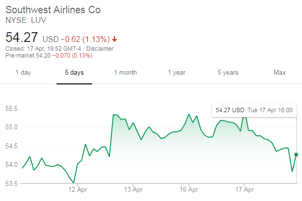 Airline share prices in the aftermath of Southwest Airlines mid-air incident