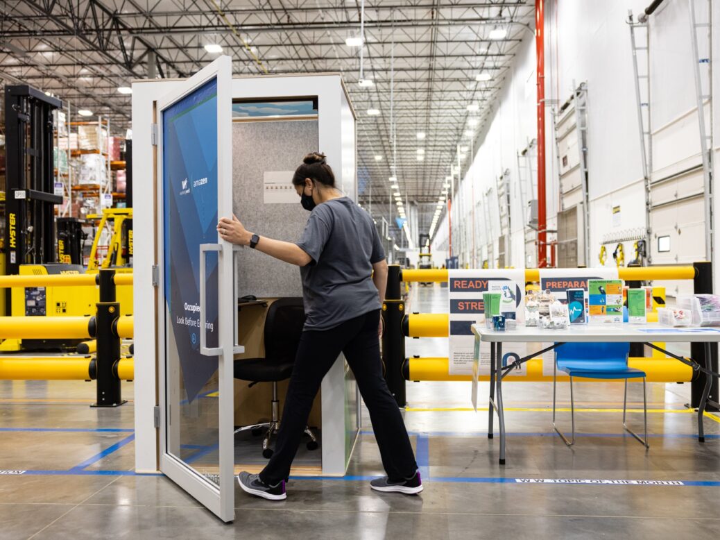 Amazon’s AmaZen booth is part of the ecommerce company’s WorkingWell programme, which is designed to provide employees with different initiatives to boost their mental and physical wellbeing.