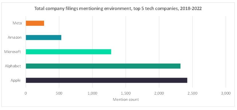 According to GlobalData’s company filings database, Apple is also leading in mentions of the environment in the last five years.