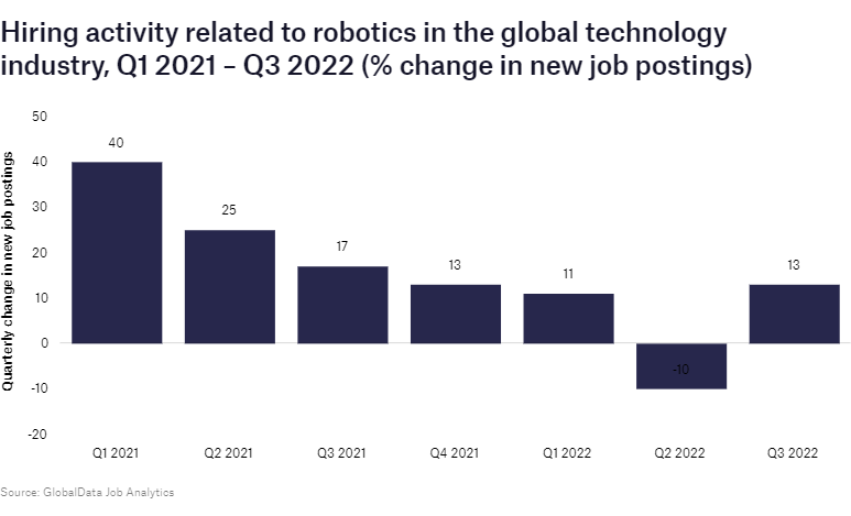 Quarterly Hiring Update: Hiring activity related to robotics increased by 13% in the technology industry in Q3 2022