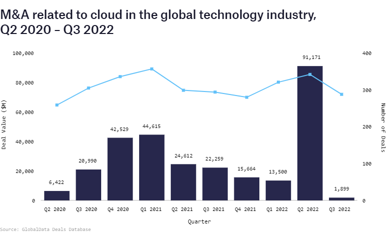 M&A activity related to cloud decreased by 16% in the technology industry in Q3 2022