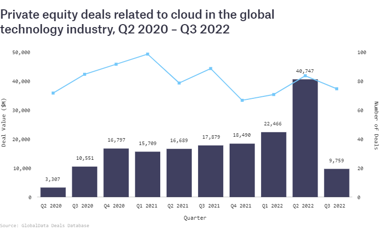 Private equity deal activity related to cloud decreased by 11% in the technology industry in Q3 2022
