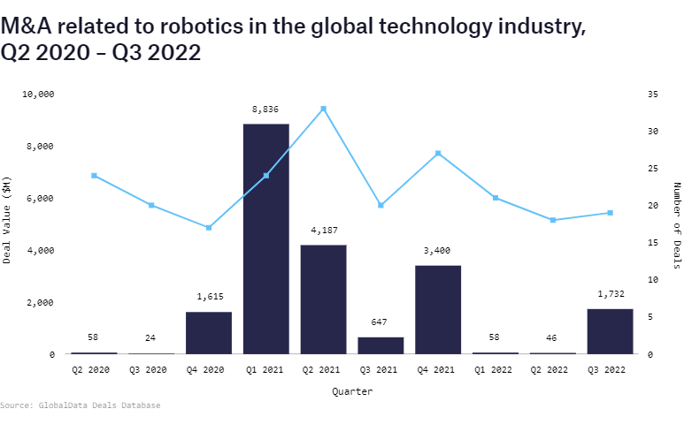 Who’s acquiring who? M&A activity related to robotics increased by 6% in the technology industry in Q3 2022