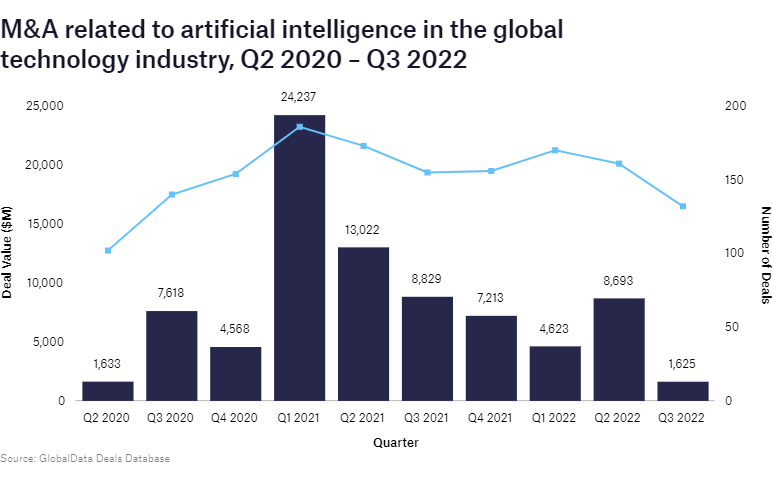 Who’s acquiring who? M&A activity related to artificial intelligence decreased by 18% in the technology industry in Q3 2022