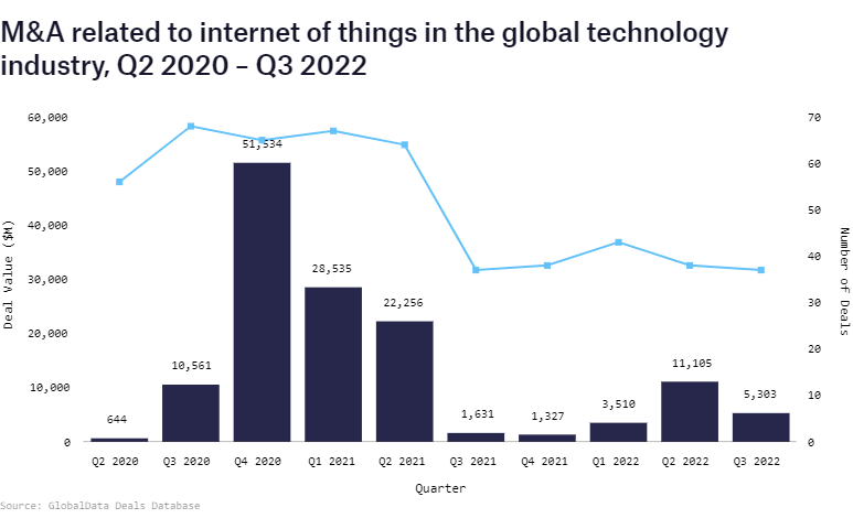 M&A activity related to internet of things decreased by 3% in the technology industry in Q3 2022