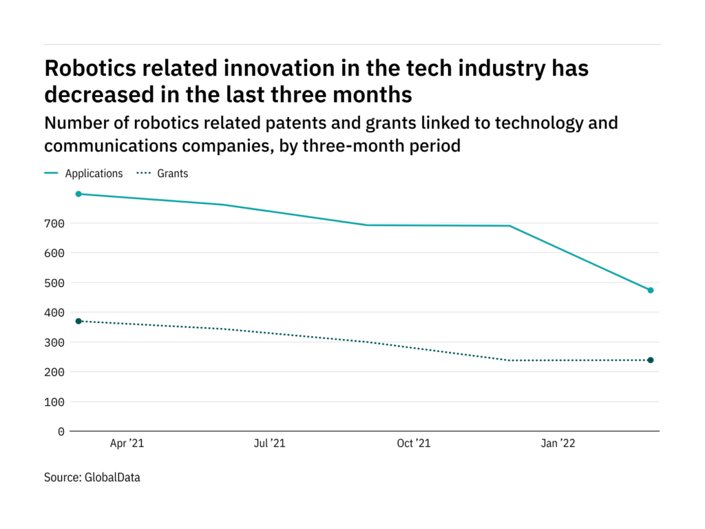 Robotics innovation among tech industry companies has dropped off in the last year