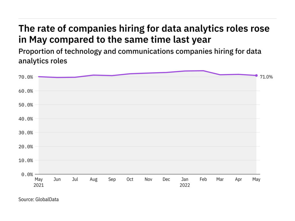 Data analytics hiring levels in the tech industry rose in May 2022