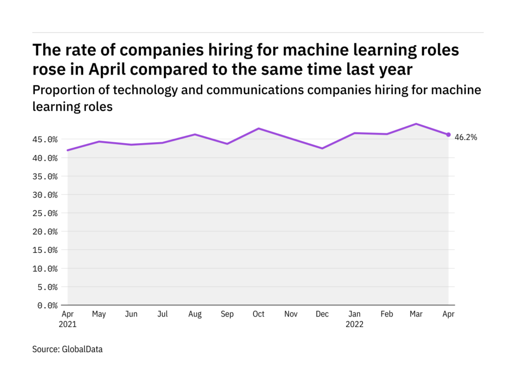 Machine learning hiring levels in the tech industry rose in April 2022