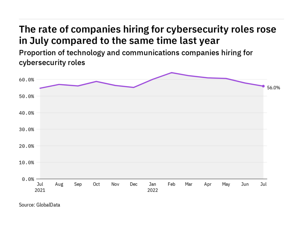 Cybersecurity hiring levels in the tech industry rose in July 2022