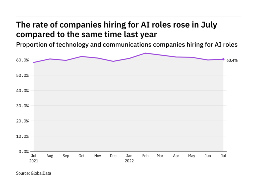 Digitalisation hiring levels in the tech industry rose in July 2022