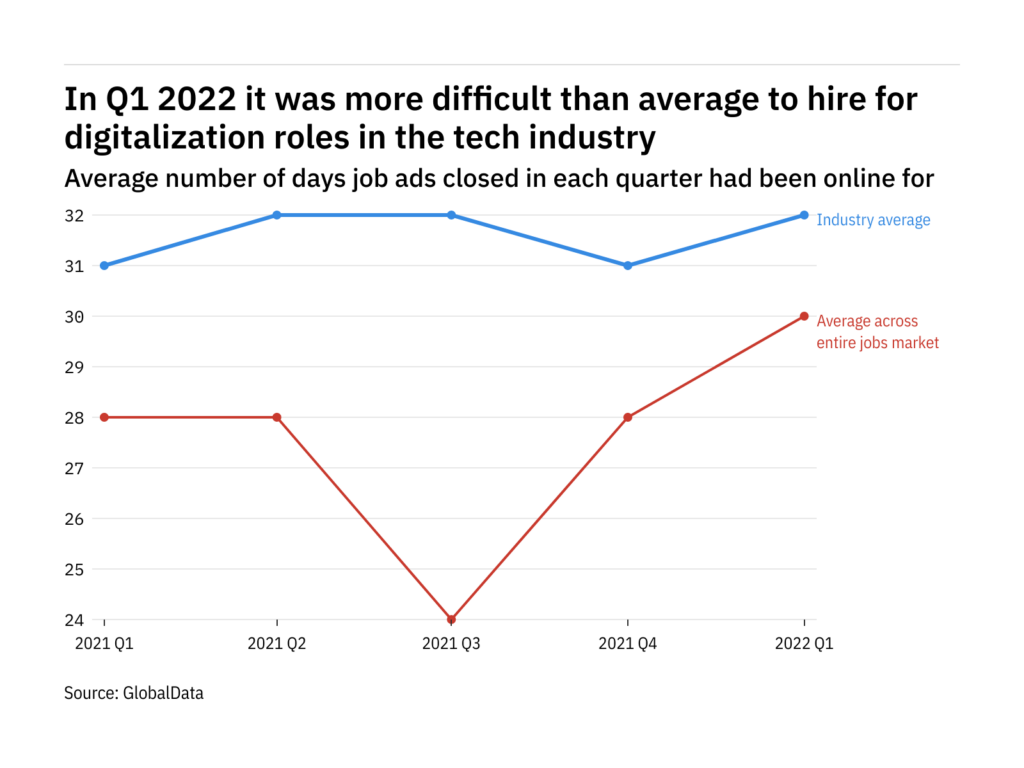 The tech industry found it harder to fill digitalization vacancies in Q1 2022