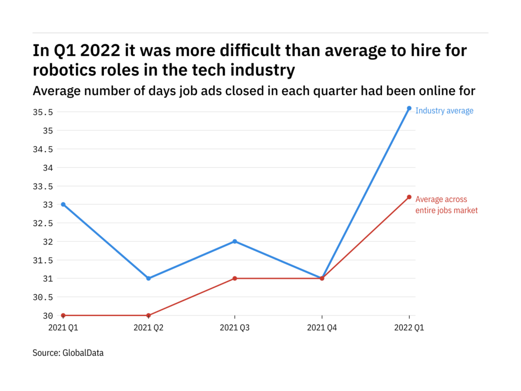 The tech industry found it harder to fill robotics vacancies in Q1 2022