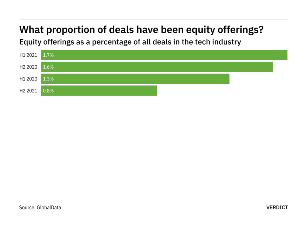 Equity offerings decreased significantly in the tech industry in H2 2021