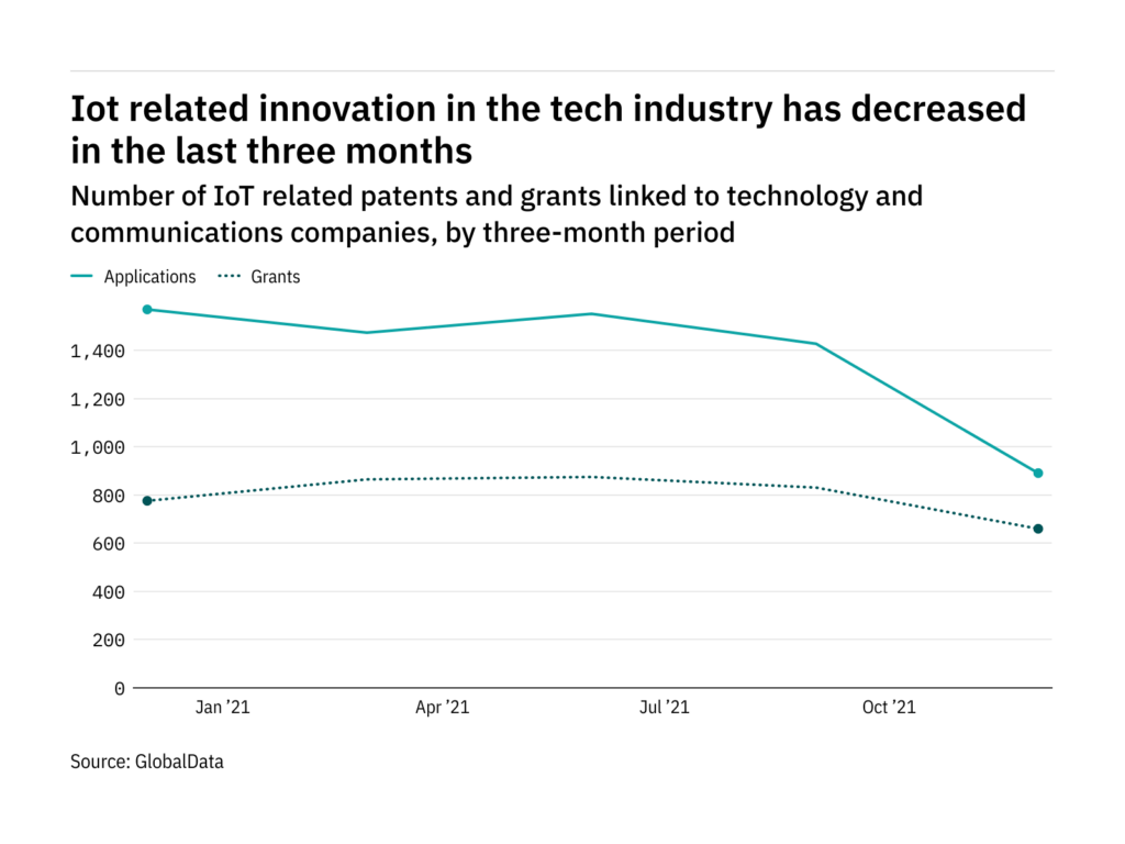 Internet of things innovation among tech industry companies has dropped off in the last year
