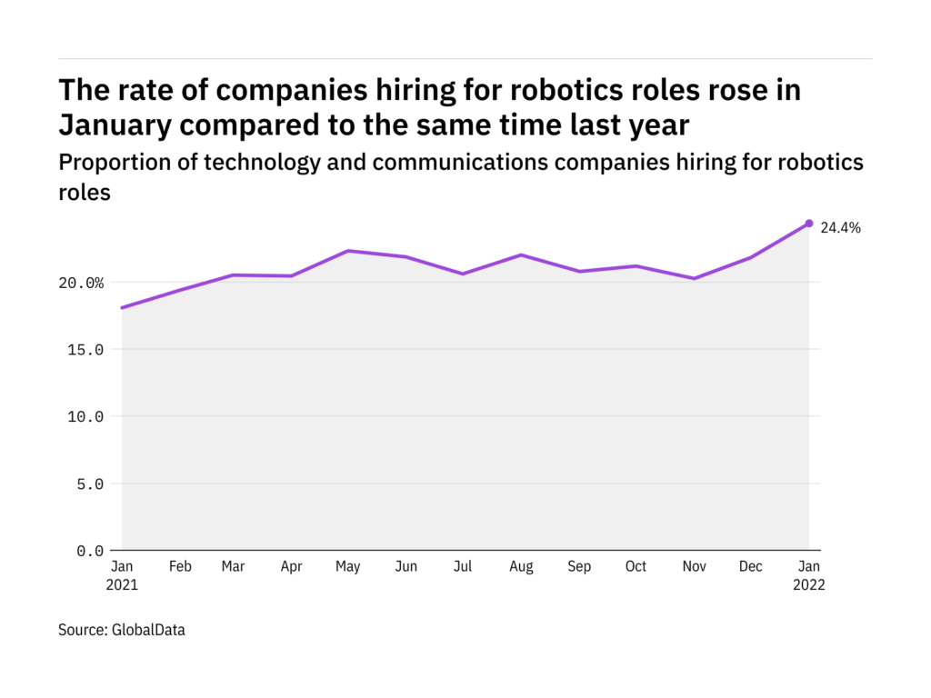 Robotics hiring levels in the tech industry rose to a year-high in January 2022