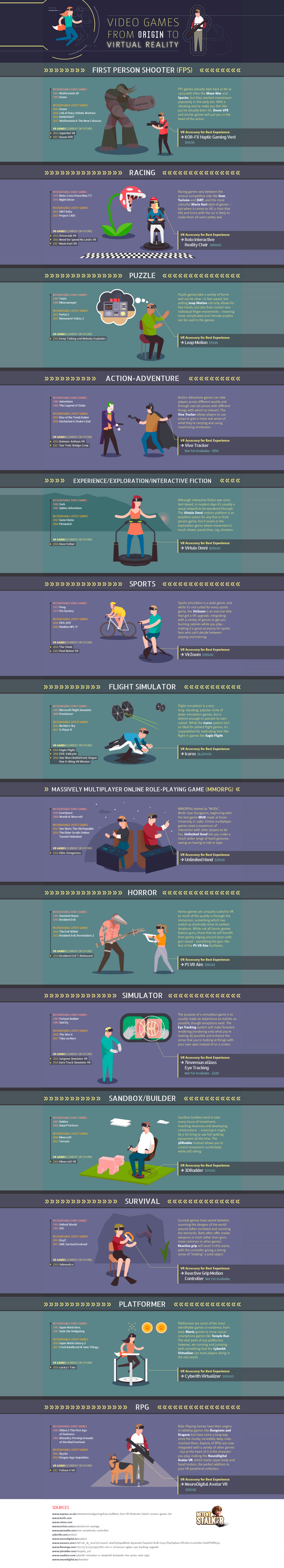 They list all the types of games using VR technology, and what accessories you’ll need to get the best experience in each.