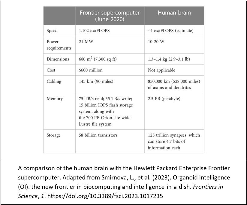 However, some are researching the potential of harnessing brain organoids as computers. Indeed, in February 2023 an international team of scientists published a paper on “Organoid Intelligence” in Frontiers in Science (See top of page).