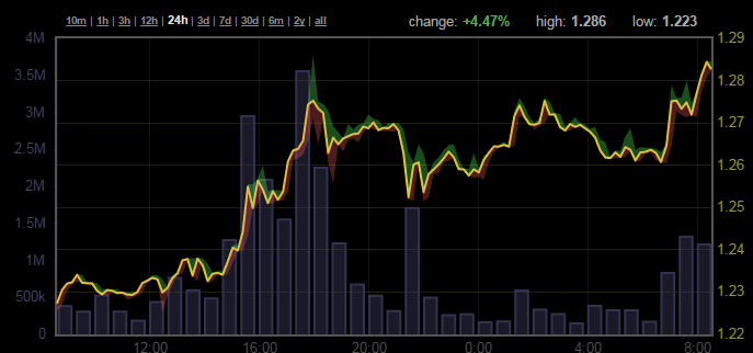 For the first time one bitcoin is now worth more than an an ounce of gold — last night bitcoin ended the day at $1,268, while a troy ounce of gold stood at $1,233. Bitcoin has continued to climb, with the price hitting $1,279 a short time ago on one of the major exchanges, Bitfinex.