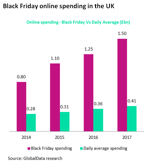 This year some £10.1bn ($13.4bn) is set to be spent over the so-called Black Friday period (20 November to 27 November), up 3.8 percent on last year, according to GlobalData research.