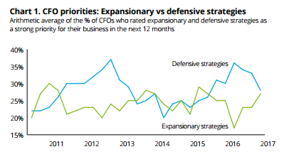 The Brexit shock that hit corporate spirits last June has eased. Optimism among CFOs has hit an 18-month high and uncertainty has fallen from a post-referendum record high to levels last seen in early 2016.