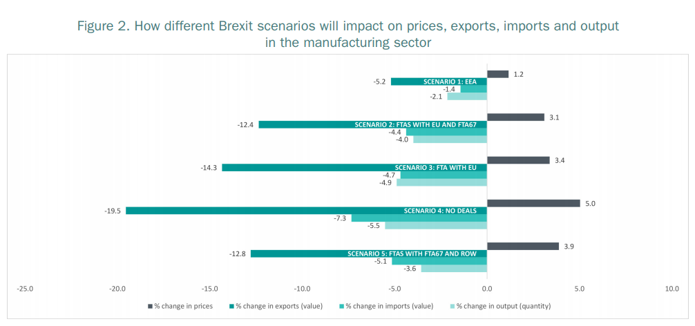 Meanwhile, British makers of basic goods including food will get a boost from Brexit, but these gains will not offset the hit to the UK’s high-tech manufacturing including aerospace, automotive and pharmaceuticals, according to a new report.