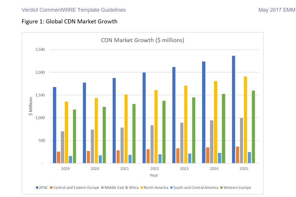 GlobalData’s coverage of the CDN wholesale sector and discussions with global CDN wholesale providers over the last two years indicate a number of factors driving growth in CDN wholesale. Firstly, digitalization across the globe has played an important role in the acceleration of CDN. This includes the digital economy, particularly in regions like APAC becoming more integrated to the consumer and business segment, stemming from use cases like online media content and live broadcasting.