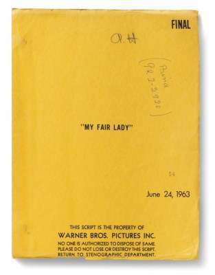 Audrey Hepburn’s working script for the 1964 Warner Bros. production My Fair Lady.