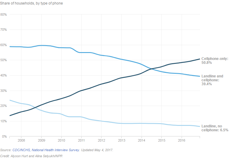 In 2003, the CDC first started to ask participating households whether they had “at least one phone inside [the] home that is currently working and is not a cell phone.”