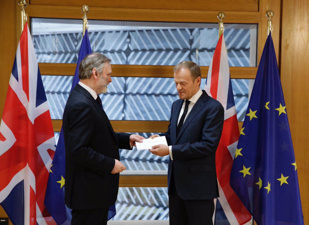 European Council president Donald Tusk tweeted to say he received the formal notification that the UK is leaving the European Union.