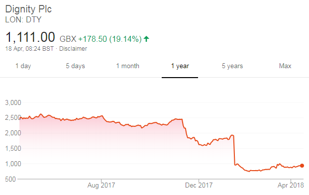 Despite today’s 20% rise in Dignity’s share price, the company’s value is still well under where it was just six months ago.