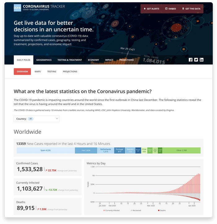 I get alerts in the morning if Worldometer has a new country that Johns Hopkins hadn’t listed for coronavirus, or we’re tracking multiple sources of different reported coronavirus cases so that we can monitor if something’s flipping there, or using data about usage within Domo to understand what your users are doing.