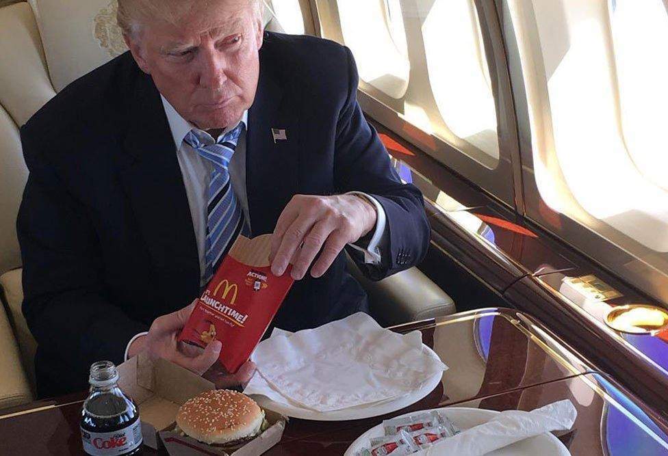 If he was not having his six-thirty dinner with Steve Bannon, then, more to his liking, he was in bed by that time with a cheeseburger.