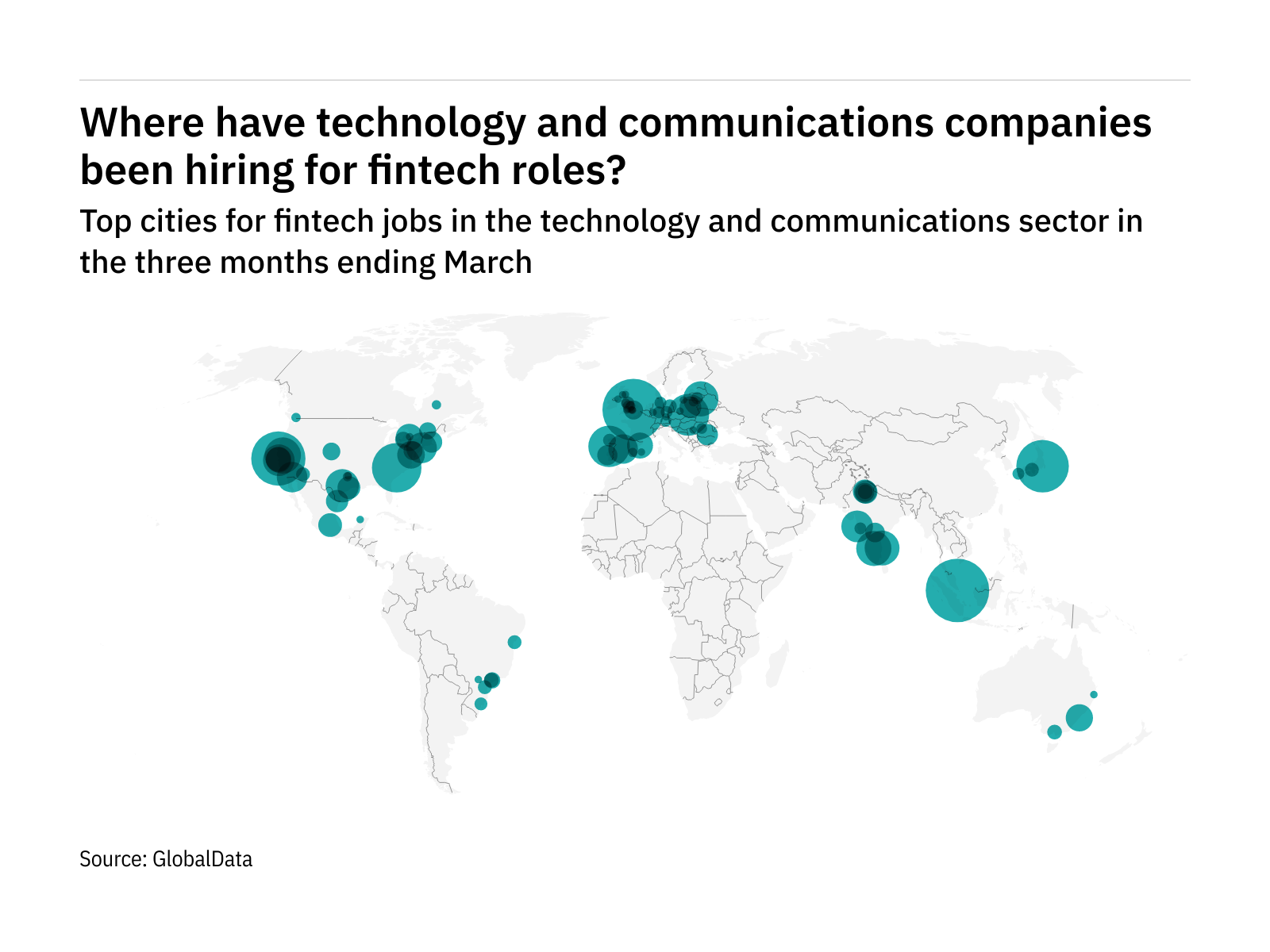 Some 4.3% of all tech industry fintech roles were advertised in Singapore (Singapore) in the three months ending May.