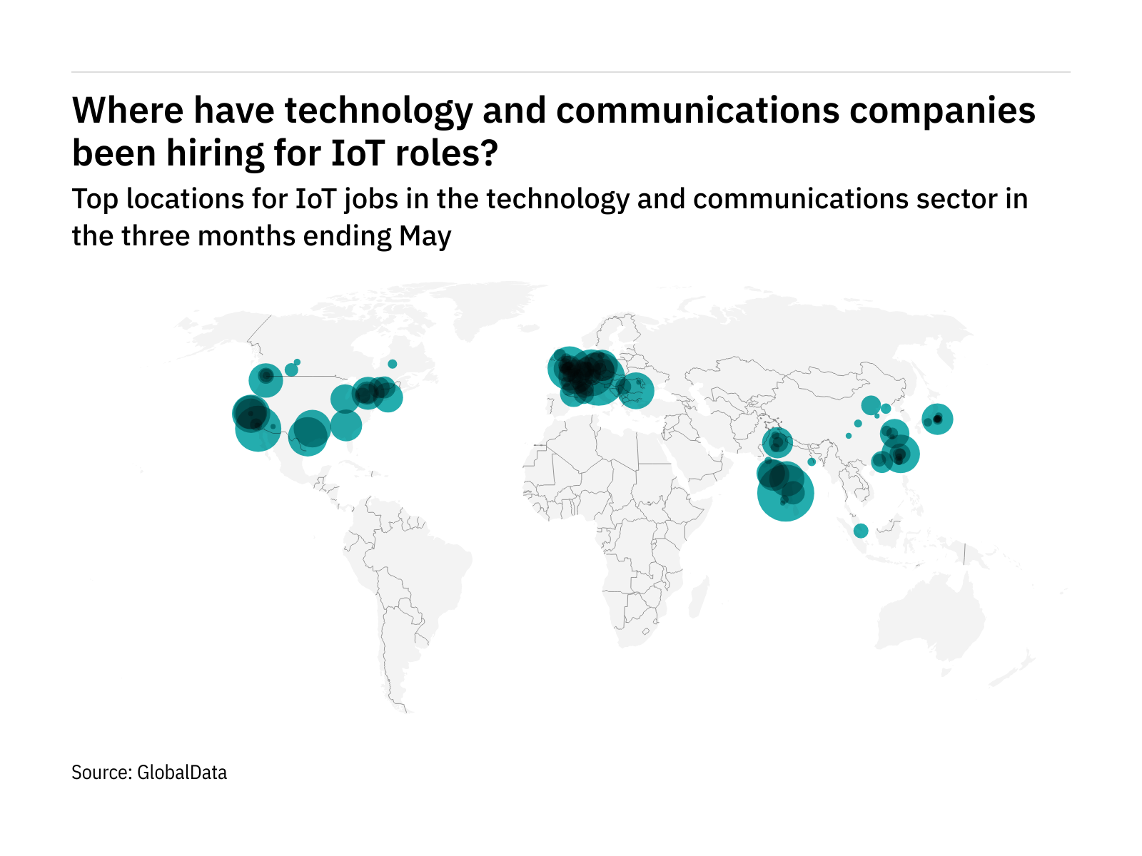 Some 3.3% of all tech industry IoT roles were advertised in Bengaluru (India) in the three months ending May.