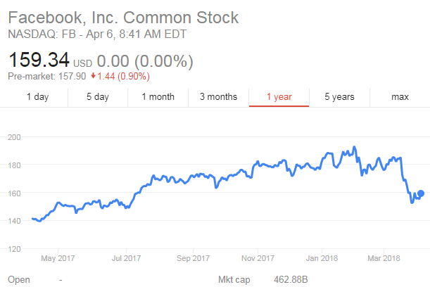 Facebook shares have been spiralling since the UK’s Observer newspaper reported the social network’s close relationship with Cambridge Analytic last month.