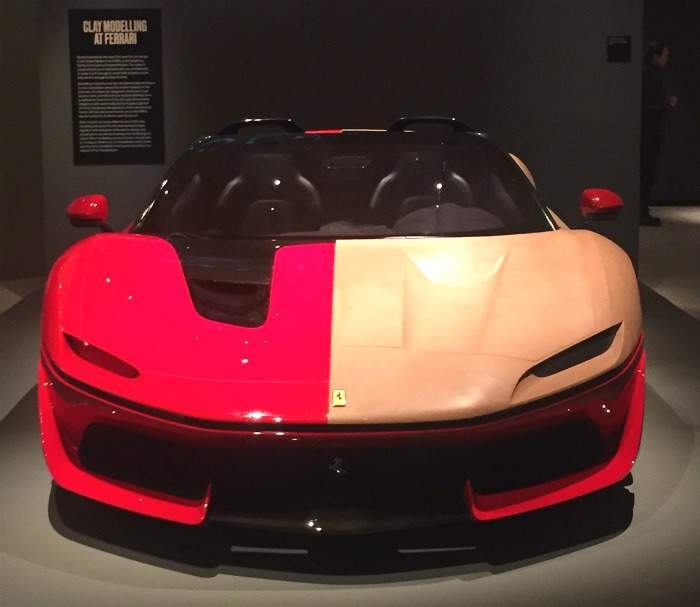 As a handy label points out, the Ferrari J50 above is actually a clay model, rather than the real thing.