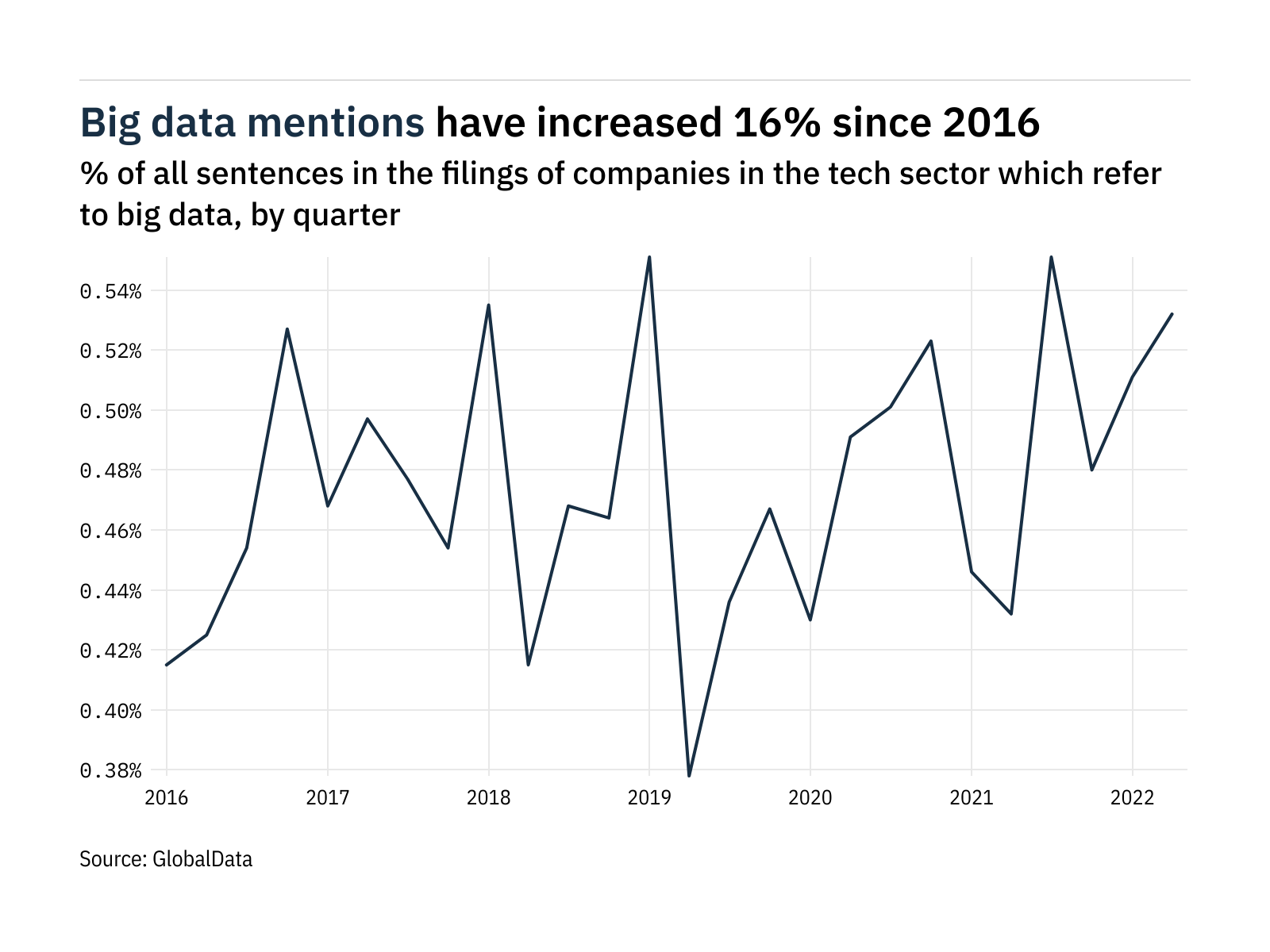Mentions of big data within the filings of companies in the tech sector were 23% higher in the second quarter of 2022 than in Q2 of 2021, reveals new data from GlobalData.