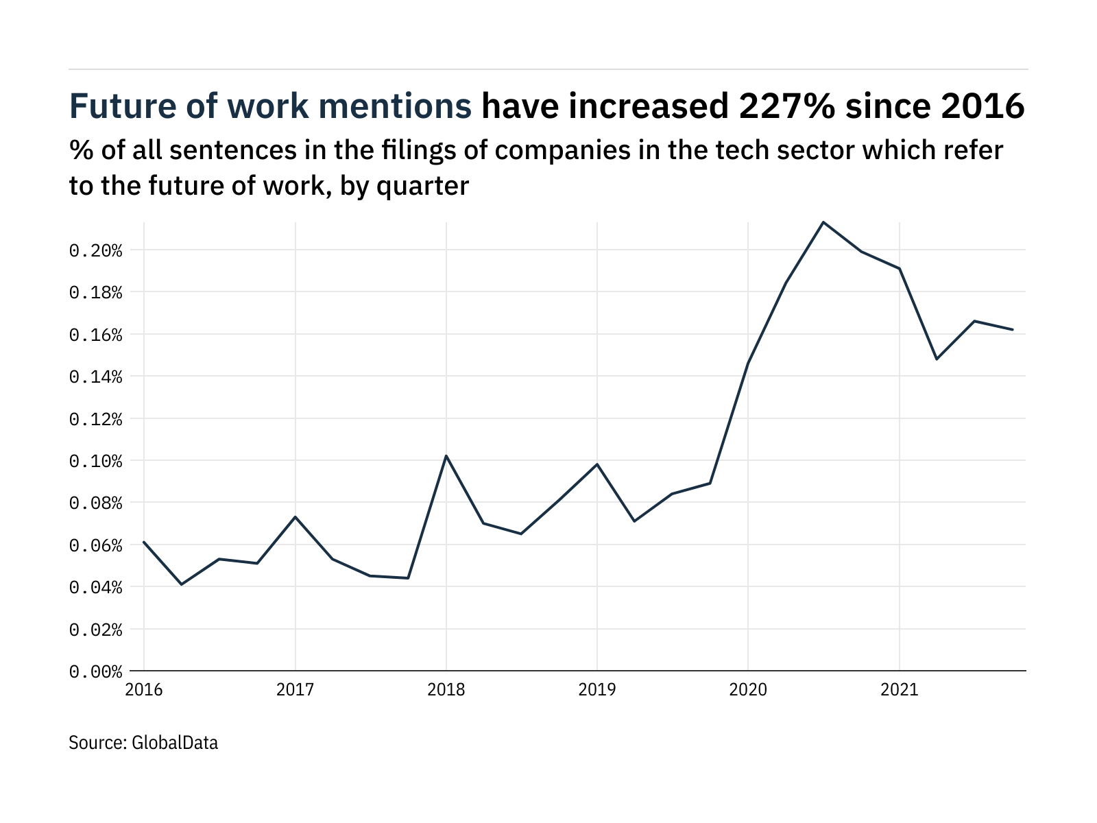 Mentions of the future of work within the filings of companies in the tech sector were 227% higher during 2021 than in 2016, according to the latest analysis of data from GlobalData.