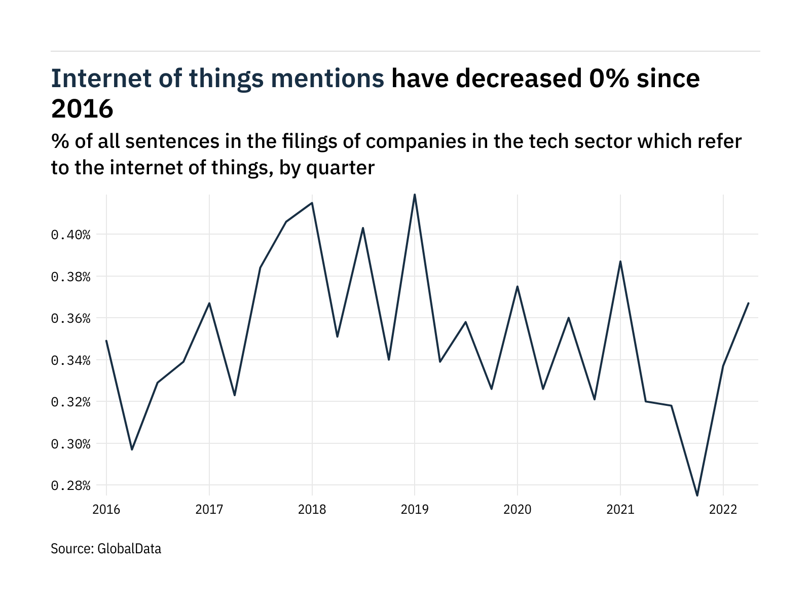 Mentions of the internet of things within the filings of companies in the tech sector were as frequent between July 2021 and June 2022 as in 2016, according to the latest analysis of data from GlobalData.
