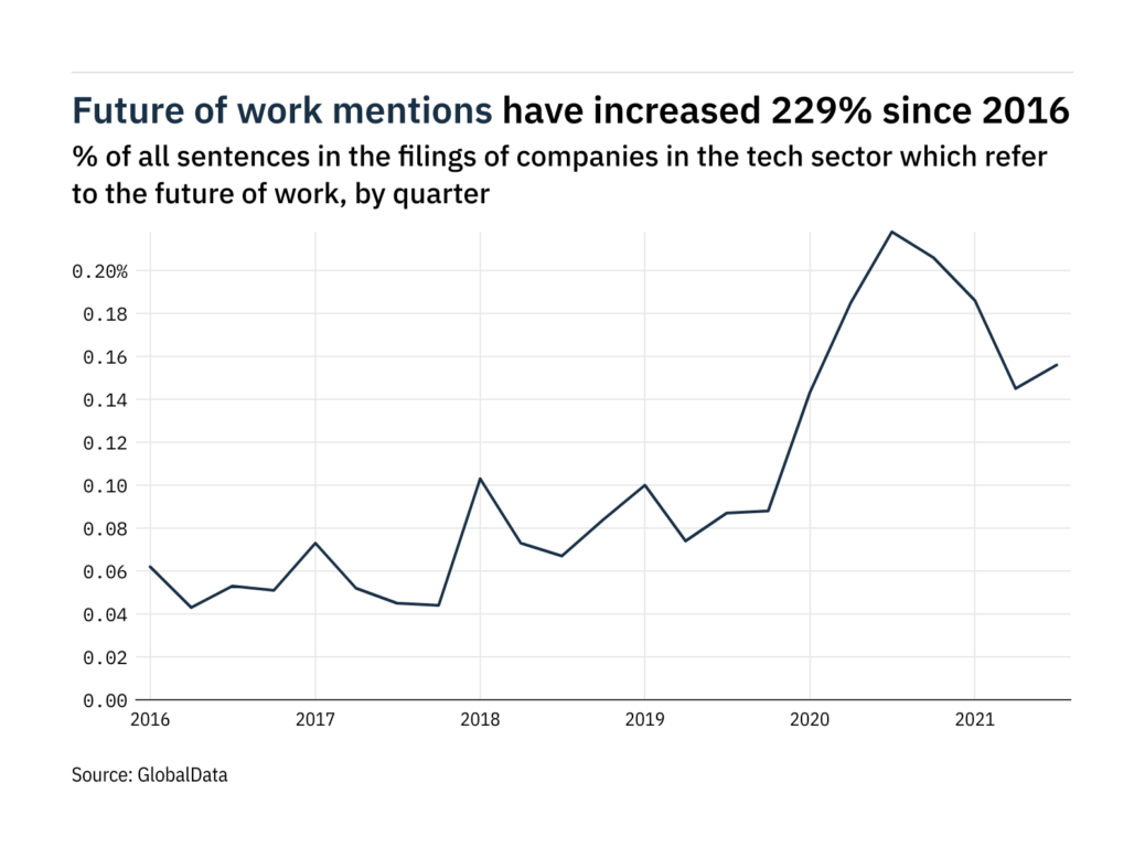 Mentions of the future of work within the filings of companies in the tech sector were 28% lower in the third quarter of 2021 than in Q3 of 2020, according to research and analytics firm GlobalData.
