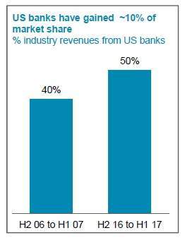 1. US banks have grown their market share up 10 percent, from what it was 10 years ago
