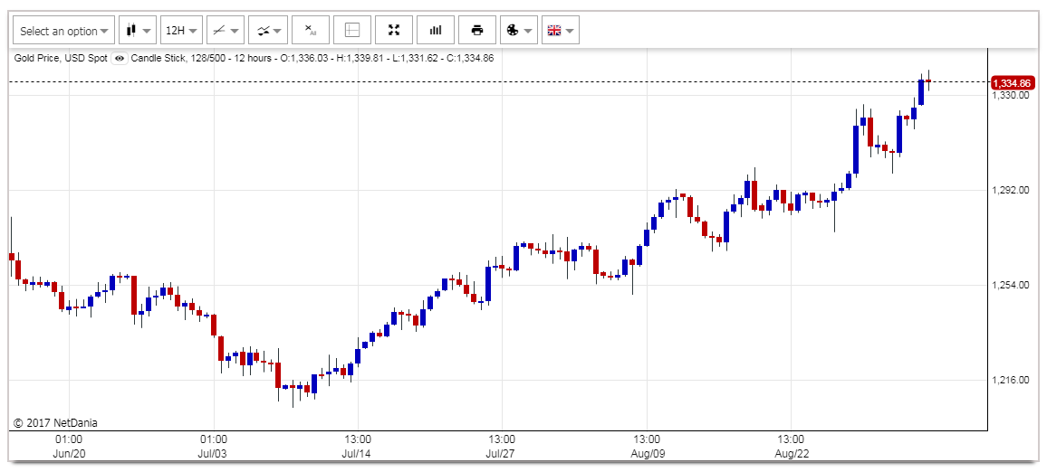 Gold is once again the major beneficiary as tensions in the Korean peninsula reach fever pitch once again, which has seen investors flock to safe haven assets. The precious metal is trading around $1337.5/troy oz., the high it touched on the night of the US election back in November, having completed a 2-day bullish flag pattern from $1300. Expect North Korean rhetoric to heavily influence the safe haven asset throughout the day as global leaders react to the latest provocations.