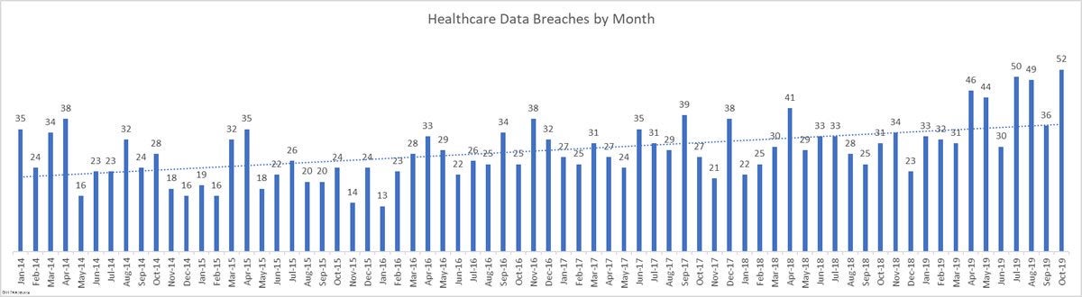 The journal, which draws data of reported breaches from the US Department of Health & Human Services’ (HHS) Office for Civil Rights, also found that October was the worst month so far for data breaches, with a 44.44% month-over-month increase in healthcare data breaches.