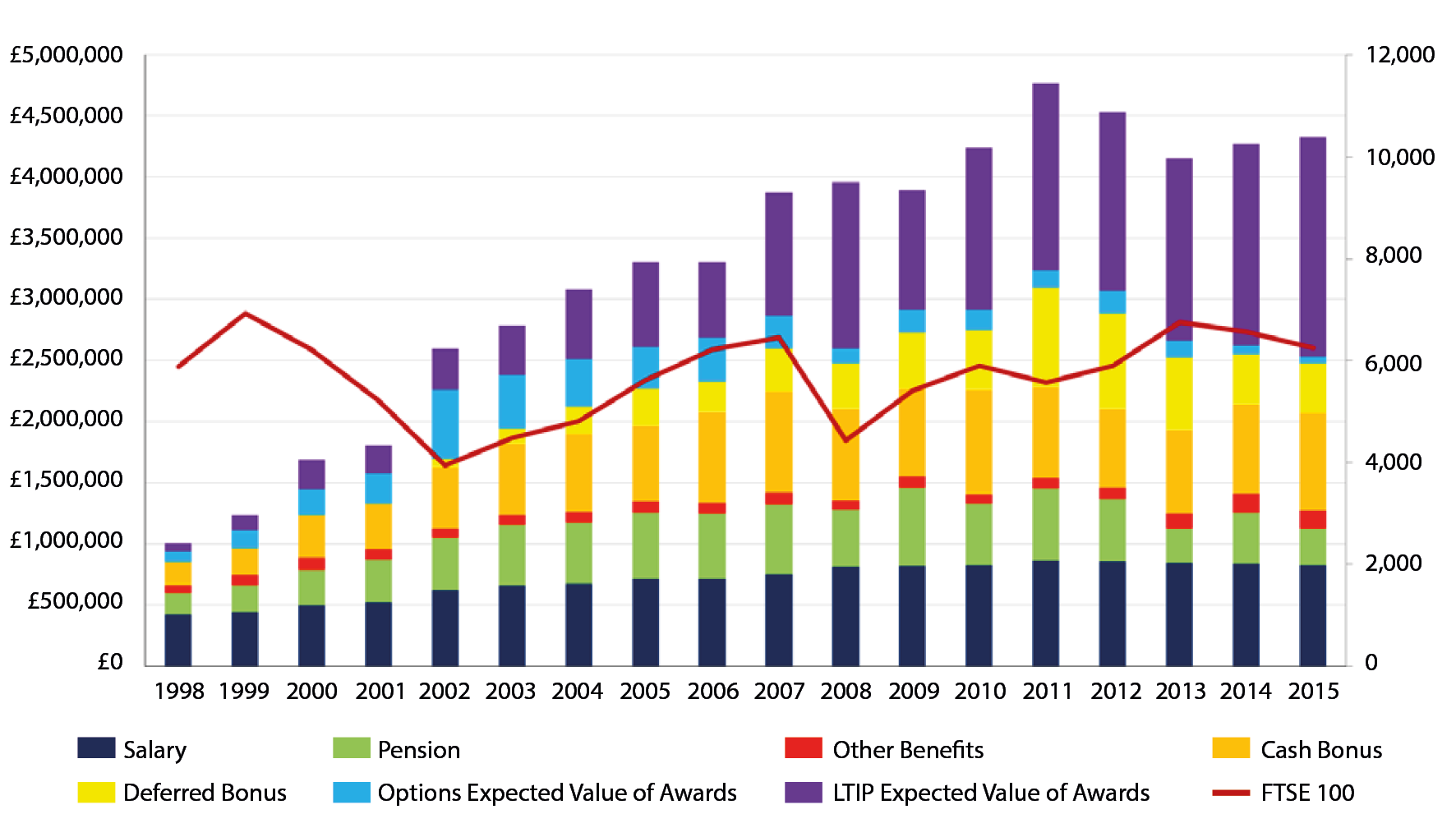 While salaries have barely grown, the amount of Long-Term Incentive Plan (LTIP) awards has leapt from almost nothing before the turn of the millennium.
