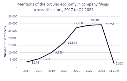 By GlobalDataAccording to research and analysis company GlobalData, mentions of the circular economy in company filings increased 700% between 2017 and 2021. However, this did plateau between 2022 and 2023.