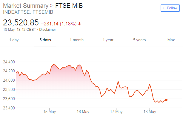 Italian ten-year bonds fell to their weakest level since last October, and equity markets have dipped as investors clamoured to sell Italian stock following the news of the coalition.
