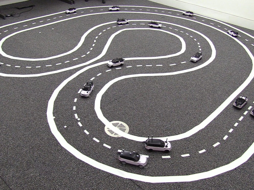 A fleet of miniature autonomous cars has shown how driverless cars improve traffic flow by at least 35% when programmed to work together.